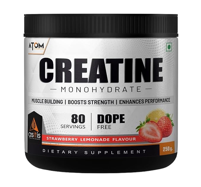 Creatine Monohydrate is one of the most popular and well-researched sports supplements on the market, used by pro-athletes, bodybuilders, and regular gym-goers. ATOM Creatine Monohydrate is micronized, caffeine-free, gluten-free, soy-free, calorie-free, dope-free and refreshing flavoured supplement manufactured in a GMP-complaint facility. It has gone through 3rd party lab-testing for assurance and purity and safety. The micronized Creatine is a superior, more effective nutritional product that allows for increased and more rapid assimilation into your body.