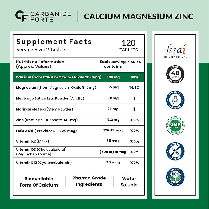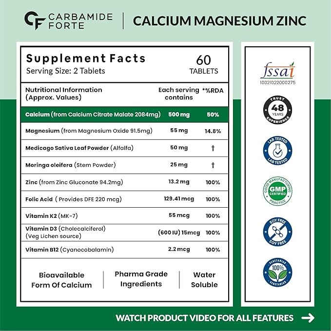 ✅ ??????? ??? ??????? ?? ??????? ???? ???? ????????? ??????? ??? ?????? ??????????: Unlike other calcium supplements for Women these Calcium supplement & zinc supplements for men provide 1042 mg of Calcium Citrate Malate per zinc & magnesium tablets, a water-soluble form of calcium magnesium zinc d3 b12 known for its superior bioavailability compared to Calcium Carbonate. This Magnesium & Zinc Supplement avoids bloating and calcium deposits, offering a gentle solution for long-term use.