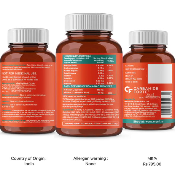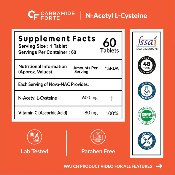 ✔ N ACETYL CYSTEINE - A MASTER ANTIOXIDANT THAT BOOSTS IMMUNE SYSTEM: Carbamide Forte N Acetyl-Cysteine nutritional supplement helps to restore ‘Glutathione - The Master Antioxidant’ in the body. Our NAC 600mg also helps to neutralise free radicals, strengthens immune cells and promotes a healthy immune system.