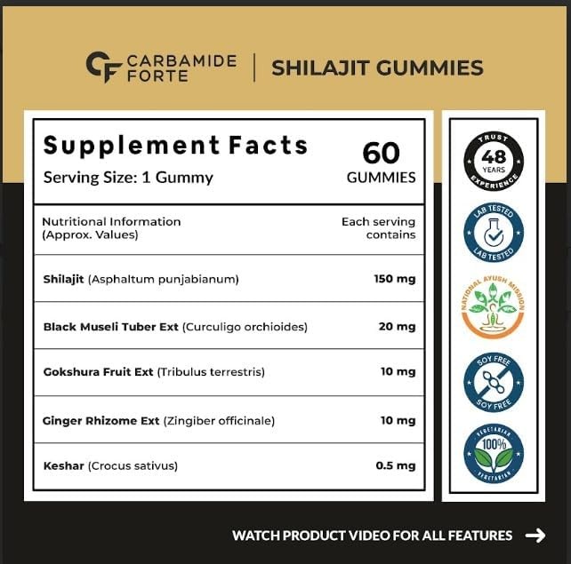 ✅ ???????? ??????? ??????????? ???? ???????? ??????? : Each serving of Pure Shilajit / shilajeet Resin Gummies delivers 10 mg of Tribulus Terrestris and 20 mg of Black Musli Tuber Extract. These ingredients in shilajit / Shilajeet gummy work synergistically with Shilajit to support testosterone levels. Boost your stamina for those demanding workouts!