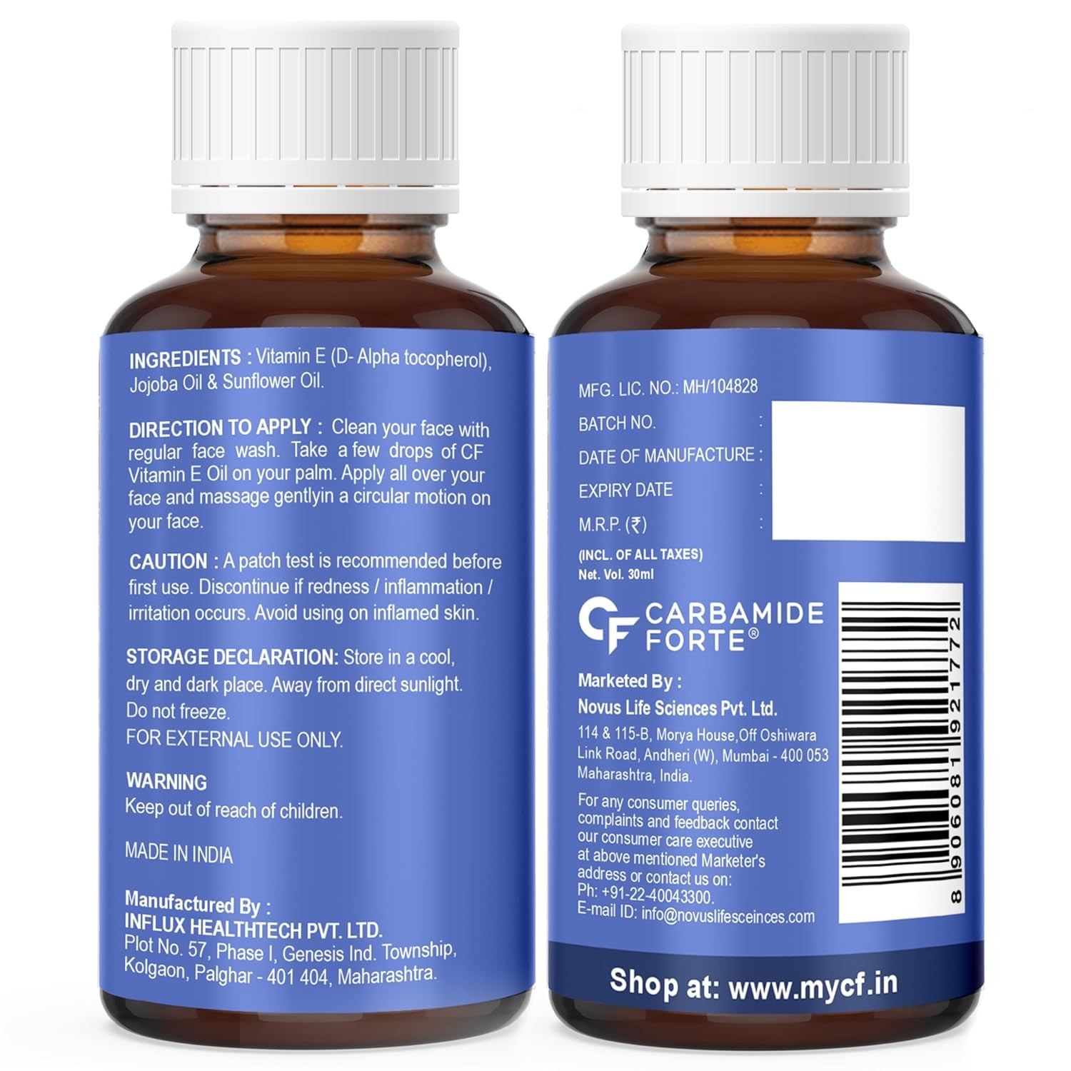 ✅??????????????? ???????? ????????: Carbamide Forte Vitamin E Oil for face and skin is a versatile product designed to hydrate and nourish the skin while enhancing its texture and appearance. Perfect for daily use, it helps reduce visible signs of ageing, improves elasticity, and promotes an even skin tone. Whether used for moisturising or addressing specific concerns like scars and stretch marks, this oil delivers comprehensive care for a radiant, healthier-looking complexion.