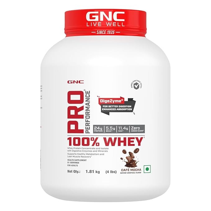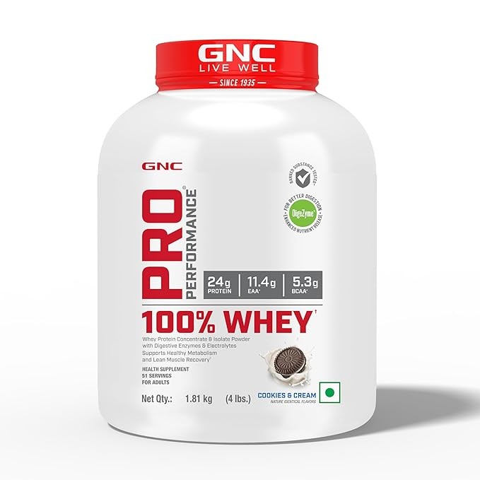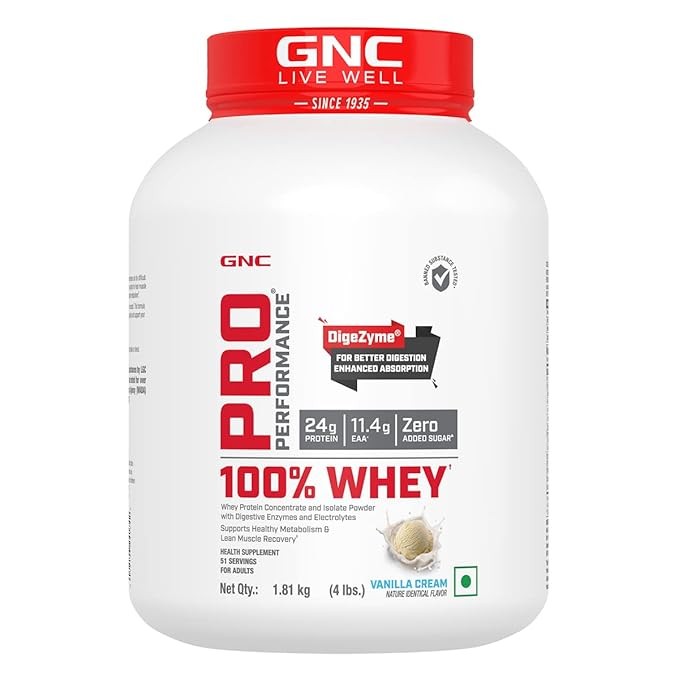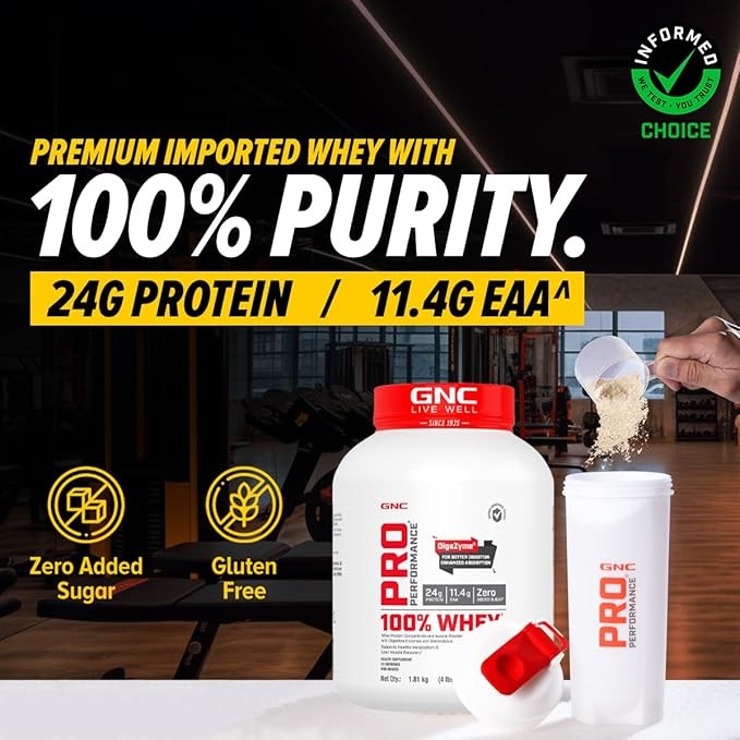 - GNC Pro Performance 100 Percent Whey Comprising Of Whey Concentrate And Whey Isolate With Digestive Enzymes And Minerals