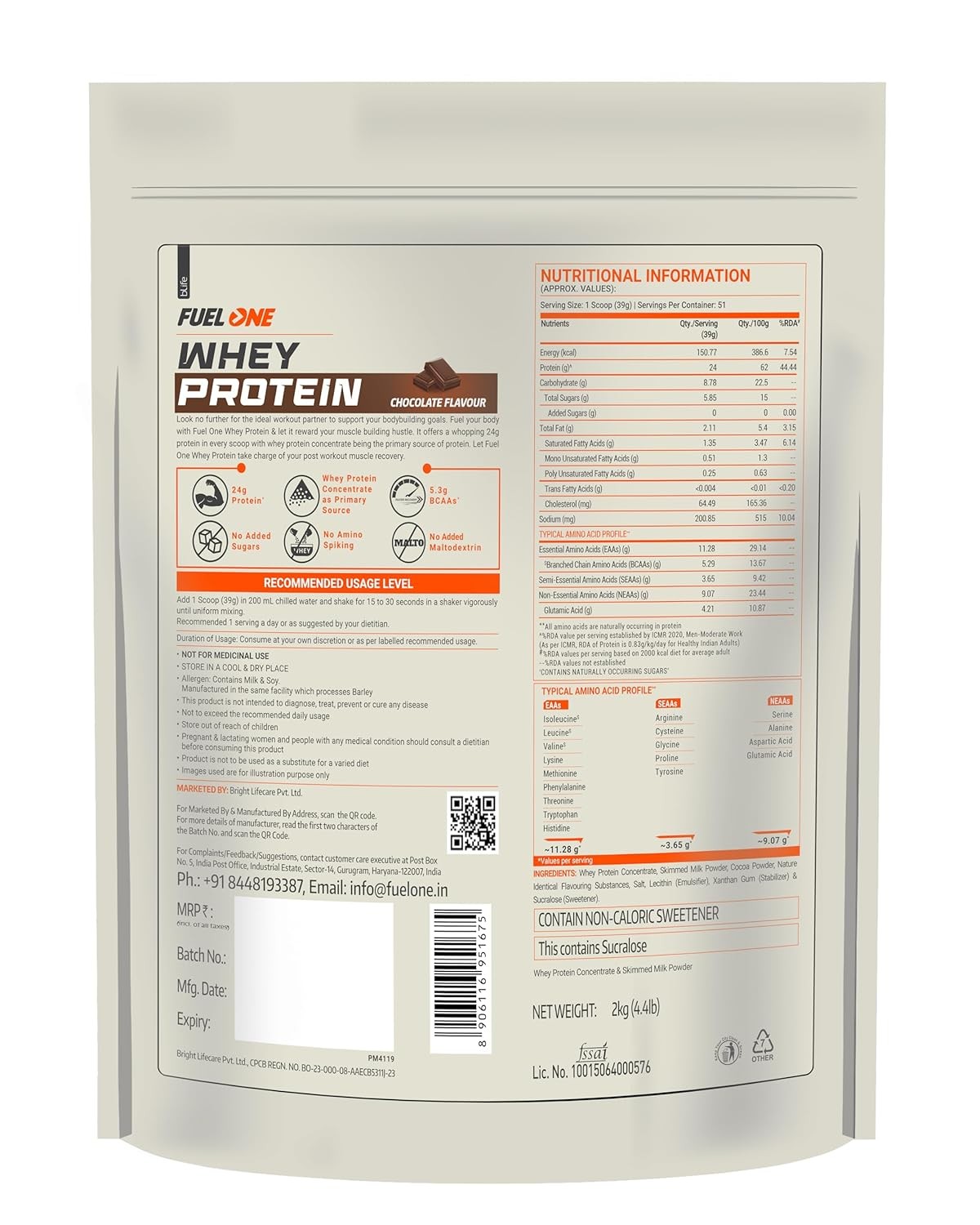 PURE & CLEAN SOURCE OF PROTEIN: Fuel One Whey Protein is a pure and high-quality whey protein. It is free from added sugars, doping ingredients, amino spiking, and maltodextrin. Every single unit of this health supplement can be verified for authenticity via website