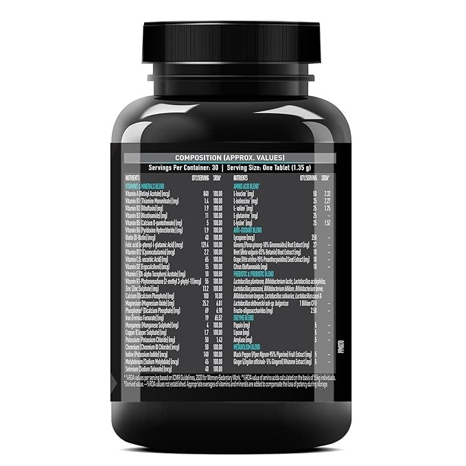 - MuscleBlaze Multivitamin Strengthens Immunity, Stamina And Metabolism.