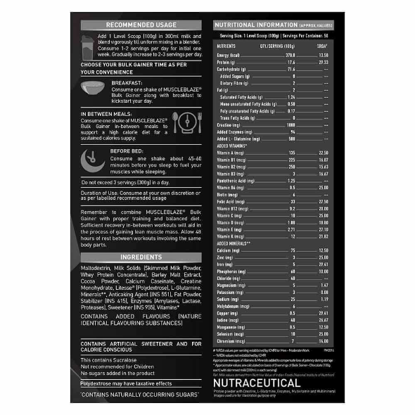 - MuscleBlaze Bulk Gainer With Creatine Is A High-calorie Gainer For Gym Enthusiasts And Bodybuilders