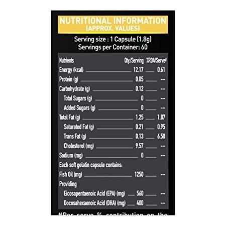 RECOMMENDED DOSAGE- Consume one omega 3 fish oil capsule 1000mg with water, two or three times a day, preferably with a meal or as suggested by your dietitian