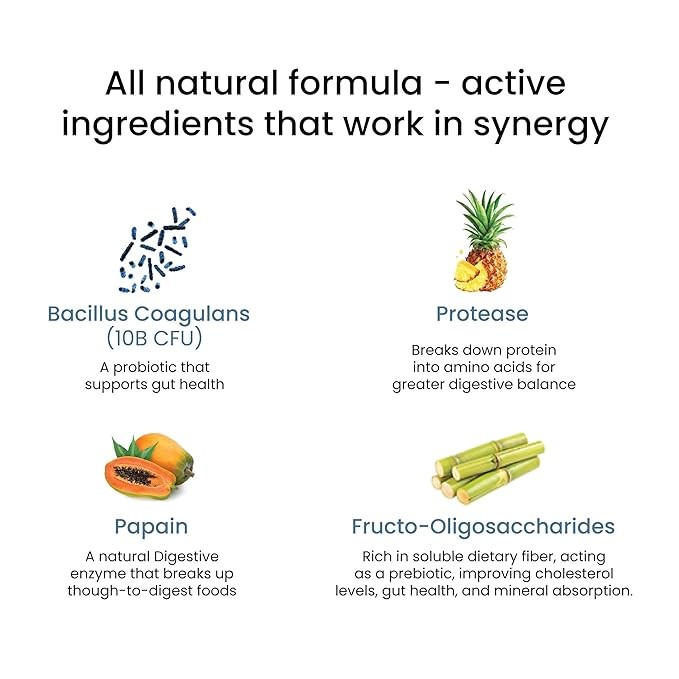 COMPLETE DIGESTIVE BALANCE: Give your Gut a boost with pure Digestive Enzyme Blend – a potent Plant Based enzyme blend made up of Protease and Papain (From raw papaya and pineapple) that reduces the symptoms of irritable bowel syndrome, increases nutrient absorption and boosts immunity. Protease helps break down proteins into singular amino acids to help you enjoy better digestion and absorption. Papain eases various digestive symptoms like constipation, IBS and bloating.